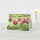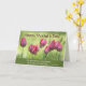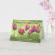 La hermosa tarjeta de escritura del Día de la Madre muestra tulipanes rosados y agradece a mamá por enseñarnos a apreciar la belleza a nuestro alrededor. El interior presenta la Biblia Verse Eclesiastes 3:11, "Ha hecho todo hermoso en su tiempo". El saludo interno se puede modificar.