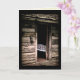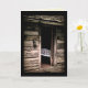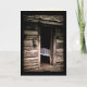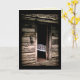 Fotografía magnífica de una cabina rústica que mira a escondidas en un edredón Carolina del Norte rural admitida escena. Tonos suaves de poner crema y de marrón, el edredón en crema, el rojo y el azul. Frontera negra en el frente de la tarjeta, tarjeta interior color nata. Añada su propio texto dentro o suprímalo para las tarjetas en blanco. Grande para enmarcar o enviar. www.kdstewart.net