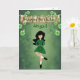 Esta tarjeta de cumpleaños personalizada Irish Dance Happy cuenta con una bailarina irlandesa con el pelo negro con fondo de shamrock verde. El saludo interior - "Por cada pétalo en el shamrock, esto te da un deseo... Buena salud, buena suerte y felicidad, por hoy y todos los días. ¡Feliz cumpleaños!" - Personaliza el frente con un nombre y el saludo puede ser editado para leer como quieras.