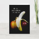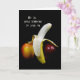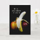 Banana apoyándose en una manzana con fondo negro para pensar en ti.