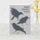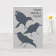 Añade tu propio mensaje al frente y al interior de esta tarjeta de felicitación para crear la tarjeta perfecta para cualquier ocasión. Es perfecto para los amantes de las aves con ilustraciones realistas de cuervos negros sobre un fondo gris claro.