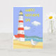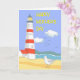 5 x 7 avanza lentamente la tarjeta de felicitación que muestra el "día de madre feliz" con una escena costera feliz incluyendo el faro, la gaviota y la playa.