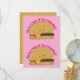 Una hamburguesa de queso riente con un pepinillo, ketchup y un queso fundido en un bollo de semillas de sésamo.