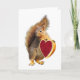 Una ardilla sostiene una caja roja y dorada de dulces en esta graciosa tarjeta El día de San Valentín.