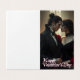Una imagen romántica y atmosférica que muestra la intensa conexión entre dos amantes en un El día de San Valentín místico. El hombre elegante con un traje oscuro y la mujer con un vestido negro impresionante se paran uno al lado del otro, rodeados de rosas rojas y el cálido resplandor de una vela. El telón de fondo lúgubre y gótico resalta la atmósfera atemporal y apasionada de este momento especial de amor.