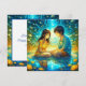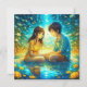 Chica de anime y niño en una carta romántica de El día de San Valentín nocturno. detalles en azul y oro bonito y reflexión sobre el agua.