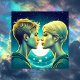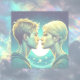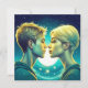 Chica turquesa de anime personalizado y momento romántico de niño parado frente a las estrellas. tarjeta de el día de San Valentín.