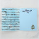 Diseño náutico Guay reelaborado a partir de la vintage con notas musicales, gaviota y ancla en colores azul verde azulado