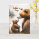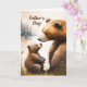 Tarjeta El día del padre, papá y el oso pequeño miran a ca