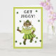 Cute tarjeta del Día de San Patricio con un gracioso gato irlandés bailando la broma.
