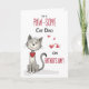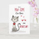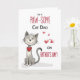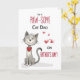 ¡Esta extravagante tarjeta del Día del Padre del gato está llena de personalidad! Con un gatito gris de ojos amplios con un collar de corazón rojo y corazones rojos juguetones flotando alrededor, el diseño es limpio y encantador en un fondo blanco. El audaz y divertido mensaje que aparece en la parte delantera dice "¡A un gato papa de la PAW en el Día del Padre!" y está acompañado de un mensaje humorístico y afectuoso dentro. Una manera perfecta de hacer saber a los seres humanos de tu felino favorito cuánto es apreciado. ¡Genial para los papás de todos los años que adoran a sus bebés de piel!