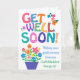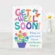 Una carta de bienvenida brillante y alegre de Get Well Soon al personalizar en la portada, con letras coloridas y estampadas y flores. Hay puntos de polka, chevrons y rayas en la inscripción 'Ponte bien pronto' y "Desear que te recuperes rápidamente de tu (espacio para tu personalizar) está en azul. Por favor, siéntase libre de personalizar el mensaje interno si lo desea.