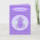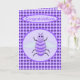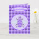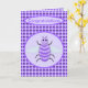 Esta tarjeta muestra una imagen gráfica de una linda abeja morada con piernas negras y ojos turbios. Tiene un cuerpo difuso de color lavanda con rayas moradas y una bonita antena púrpura en su nublada cabeza. Sus delicadas alitas tienen un patrón azul pálido en el suelo. El diseño también incluye girasoles morados de bonito. El texto es personalizable, por lo que puede incluir el nombre de su bebé hermoso y puede eliminarlo según corresponda para anunciar el sexo del bebé. El diseño es neutro desde el punto de vista del género, por lo que es adecuado para un niño o niña.