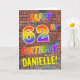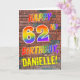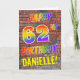 El frente de este vibrante, llamativo y divertido diseño de tarjetas de felicitación con temática de cumpleaños presenta el mensaje "FELIZ 62º BIRTHDAY" con letras que tienen un arcoíris multicolor como patrón gradiente, y un nombre personalizado de color amarillo, en un fondo de pared de ladrillo. La decoración se inspira en el graffiti o arte callejero dibujado en la pared. El interior incluye un mensaje de bienvenida de cumpleaños personalizado. Una tarjeta de felicitación feliz, divertida, de cumpleaños de personalizable como esta podría ser una manera especial de celebrar el 62 cumpleaños de alguien. [~Z0000357]