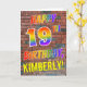 En la parte delantera de este llamativo, emocionante y vibrante diseño de tarjetas de felicitación con temática de cumpleaños, aparece el mensaje "FELIZ CUMPLEAÑOS 19" con letras que tienen un arcoíris multicolor como un patrón gradiente, y un nombre editable de color amarillo, sobre un fondo de pared de ladrillo. La decoración se inspira en el graffiti o arte callejero dibujado en la pared. El interior incluye un mensaje de bienvenida de cumpleaños de personalizable. Una tarjeta de felicitación de cumpleaños feliz, divertida y personalizada como esta podría ser una manera especial de celebrar el 19 cumpleaños de alguien. [~Z0000357]