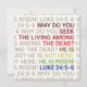 Él ha resucitado de Lucas 24:5-6. ¿Por qué buscan entre los muertos al que vive? No está aquí; ¡ha resucitado! Celebre la resurrección cristiana de Pascua con este versículo de la Biblia de Jesucristo.