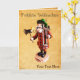Un quemador de incienso de los Räucherman alemanes, en este funda que representa una cuchilla de madera, superpuesto a una imagen de fondo. También aparece un texto en alemán que dice "Fröhliche Weihnachten" (Feliz Navidad). Agrega tu propio texto adicional.