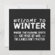 Divertido "Bienvenidos al invierno - donde los estacionamientos están hechos y los carriles no importan" diseño de conducción invernal en simple letra sans serif blanca. Este sencillo pero llamativo auto en invierno y humorístico dicho hace un buen regalo para quien vive donde nieva mucho y entiende el humor de manejar durante la temporada invernal.