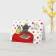 Tarjeta de cumpleaños de los Cachorros Labrador Amarillo y Labrador Negro. Personalizado única y divertida de Labrador Retriever creada por Naomi Ochiai de Japón. Dos cachorros de Labrador están celebrando su cumpleaños!! Se pintan pipas de labrador amarillo y pipas de labrador negro. Vibrante tela de mesa roja y colorido fondo de puntos polka.