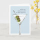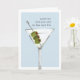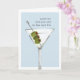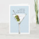 La tarjeta de cumpleaños sarcástica presenta un ilustracion de cócteles martini de color agua sobre un fondo azul-gris con "por más viejo que seas el nuevo 30" en letras de máquina de escribir antiguas. Personalizar el mensaje interno o váyase como está; el mensaje predeterminado dice "ánimo para ti — feliz cumpleaños".