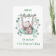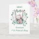¡Celebra el primer Día de San Patricio de tu nieto con un toque personalizado! Esta encantadora tarjeta muestra su nombre en la parte delantera, convirtiéndolo en un punto de referencia especial para este momento. Un oso acuarela suave desciende suavemente de una rama, rodeado de suaves rocas de champú, vegetación exuberante y suaves acentos azules. La acogedora almohada azul aporta un toque de dulzura adicional al diseño. Con un mensaje sincero en el interior, esta tarjeta es la manera perfecta de compartir amor, suerte y alegría mientras tu nieto disfruta de su primer Día de San Patricio.