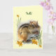 Esta tarjeta de amistad muestra un lindo chipmunk que está rellenando sus mejillas regordetas tan rápido como puede en un día de primavera. Tiene una franja negra y blanca en la espalda, blanca alrededor de los ojos, piel dorada marrón y una nariz rosada. El pequeño criador dulce está rodeado de hierba verde y lirios amarillos. También aparece dentro de la tarjeta junto con más mentiras. El texto se puede personalizar para adaptarlo a sus necesidades.