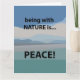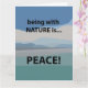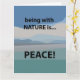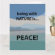 Peace Being with Nature (La paz siendo con la naturaleza) es un diseño original de la tarjeta de la paz de Nisha Prabhu. Aprovecha la tranquilidad de la naturaleza con nuestra carta "La paz es con la naturaleza". Esta preciosa tarjeta de felicitación capta la esencia de la serenidad que se encuentra en el gran exterior. Perfecto para cualquier ocasión, ya sea que estés enviando una nota de aliento, gratitud o simplemente un recordatorio para reconectarse con el mundo natural. Con un impresionante paisaje, colores tranquilizadores y un mensaje inspirador, esta tarjeta invita al destinatario a respirar profundamente, reflexionar y encontrar la paz en sus alrededores. Ideal para cumpleaños, gracias, ¡o simplemente porque! Comparte el don de la paz y la naturaleza con los que te importan. ¡Ordena hoy tu tarjeta de "Ser de paz con la naturaleza" y extiende un poco de atención!