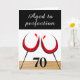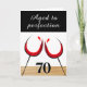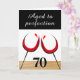 El tema del vino rojo fue la tarjeta de cumpleaños de la perfección. Tarjeta de felicitación personalizado de cumpleaños con tema de vino tinto - dos vasos de vino tinto, cita humorística Ageto a la perfección, número de edad en colores negro y blanco. Puede cambiar el número de edad.