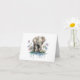 Tarjeta Elefante bebé con agua y flores en BLANCO