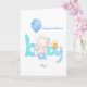 Muy lindo bebé niño con globo azul sentado sobre la letra NIÑO, felicidades por un bebé niño