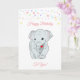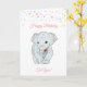 elefante de cumpleaños y estrellas multicolores en tarjeta blanca. Todos los textos se pueden personalizar.