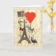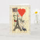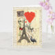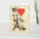 Un animal de elefante vintage divertidísimo y jovial, con globos en forma de corazón valentino rojo, con la torre Eiffel. París, Francia en un diseño retro de postal antiguo, con pavo real y mariposa. Visite la TIENDA de VINTAGEPRINTS para más diversión ilustracion vintage, románticos regalos día de San Valentín.
