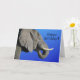 Tarjeta Elefante Feliz cumpleaños, divertida edad, azul y