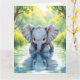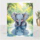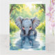 ¡Esta bonita tarjeta de cumpleaños grande para los niños puede ser personalizada! Simplemente agregue su nombre al interior de la tarjeta en el área de personalización. El frente tiene un hermoso ilustracion de un elefante bebé bebiendo de un lago mientras mira su propia reflexión. En el interior hay una barra de colores sorpresa para que tu pequeño se coloree junto con un juego de palabras divertido con elefantes.