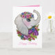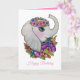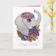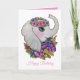 Tarjeta Elefante lindo y flores salvajes en acuarela