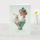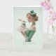 Tarjeta Elegant Blonde in Green w/ Pretty Bunny BDay Card