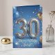 Celebrate a milestone 30th birthday in style with this elegant and festive greeting card. Featuring a rich blue background decorated with realistic gold and blue party balloons and dazzling gold confetti, this design is perfect for making an impact. The centerpiece is a stunning, 3D sparkly multi-colored balloon typography showcasing the number "30". Easily personalize the elegant gold script on the front with the recipient's name, and customize the heartfelt, inspirational message inside to make it truly special. Perfect for a son, brother, husband, or friend celebrating their big 3-0.