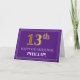 Tarjeta Elegant Faux Gold Look 13th Birthday, Name; Purple