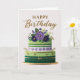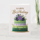 Tarjeta Elegant Floral Green Purple Gold Birthday Cake