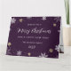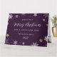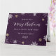 Elegant purple holiday card featuring snowflakes and stars on the front and a photo inside.