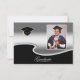 An elegant graduation party invitation with a silver-like appearance. The silver and black sections on the front are separated by a unique, curved border. The smaller size of this card means you can use it as an enclosure with announcement cards. Include it only for people you wish to invite to the party. The photo and all text are easily changed by using the template. Selecting “Personalize this design” offers you several edit options to easily change the text (wording, plus type font, color, size, position) and to edit the design elements. You may also want to scroll down to the section “Transfer design to a product” for a few suggestions about other items this design can be used on.