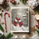 Send timeless holiday wishes with this beautifully illustrated Christmas card featuring elegant red knit stockings with snowflake details hanging from a glowing vintage lamppost in a serene winter landscape. The sophisticated pencil sketch style with selective red accents creates a classic, artistic look that captures the peaceful beauty of a snowy evening. Perfect for those who appreciate refined, nostalgic holiday aesthetics. Customize the inside message for your personal touch.
