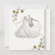 Celebrate your special day with this charming wedding invitation featuring a romantic couple illustration surrounded by soft light green floral accents. The playful, loving poses of the bride and groom add a whimsical and heartfelt touch.