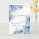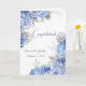 Celebra a la feliz pareja en su día especial con esta hermosa tarjeta de felicitaciones bodas. El diseño presenta un fondo floral sereno, con rosas azules y peonías rodeadas de hojas de plata y delicados acentos tipo encaje. La combinación de relajantes tonos azules y plata metálica crea un aspecto elegante y refrescante, lo que hace de esta carta una elección perfecta para una celebración formal y tranquila del amor. ¡Un sincero deseo de conmemorar su día especial!