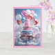Esta tarjeta fue diseñada para mi sobrina, pero es una hermosa tarjeta para que cualquiera la reciba. También contiene azules y rosa y blanco con algunos colores adicionales de globos. El fondo del borde es rosa, pero puede cambiarlo utilizando las herramientas de edición de Zazzle. Incluya su propio mensaje personal a la elección de fuentes. Me gusta el semi brillo de esta carta, pero puedes elegir mate si quieres. Celebremos cada año especial.