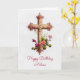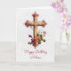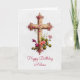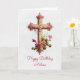 Tarjeta Elegante cruz de madera con flores rosas Cumpleaño