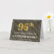 La parte delantera de este respetable y lujoso diseño de tarjetas de felicitación de cumpleaños tiene un gran número ordinal "96º" con una apariencia inspirada en el oro de imitación/imitación, el mensaje "FELIZ 96º CUMPLEAÑOS", un nombre de destinatario personalizado, y un patrón de borde compuesto de líneas delgadas, en un fondo de patrón de imitación/imitación de madera. El interior presenta un mensaje de bienvenida de cumpleaños personalizado, o tal vez podría ser borrado y dejado en blanco si se va a escribir un mensaje a mano. Una tarjeta de felicitación de cumpleaños editable como esta podría ser una manera elegante de enviar deseos de cumpleaños a alguien que está celebrando su cumpleaños noventa y seis. [~Z0000492]