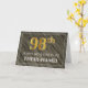 La parte delantera de este lujoso y elegante diseño de tarjetas de felicitación de cumpleaños tiene un gran número ordinal "98th" con un aspecto inspirado en el oro imitación/imitación, el mensaje "HAPPY 98TH BIRTHDAY", un nombre de destinatario personalizado, y un patrón de borde compuesto por líneas delgadas, sobre un fondo inspirado en la imitación/imitación de madera falsa. El interior presenta un mensaje de bienvenida de cumpleaños de personalizado, o tal vez podría ser borrado y dejado en blanco si se va a escribir un mensaje a mano. Una tarjeta de felicitación de cumpleaños de personalizable como esta podría ser enviada para celebrar el cumpleaños noventa y ocho de alguien. [~Z0000492]