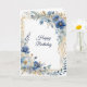Tarjeta Elegante cumpleaños floral de oro azul