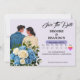 Anuncia tu día especial con estilo con nuestro anuncio de guardar la fecha floral de azul polvoriento e ivory personalizado. Con una hermosa ilustración de acuarela de rosas, esta tarjeta elegante es perfecta para agregar un toque de romance a la planificación de tu boda. Personaliza con tus nombres y detalles de la boda.